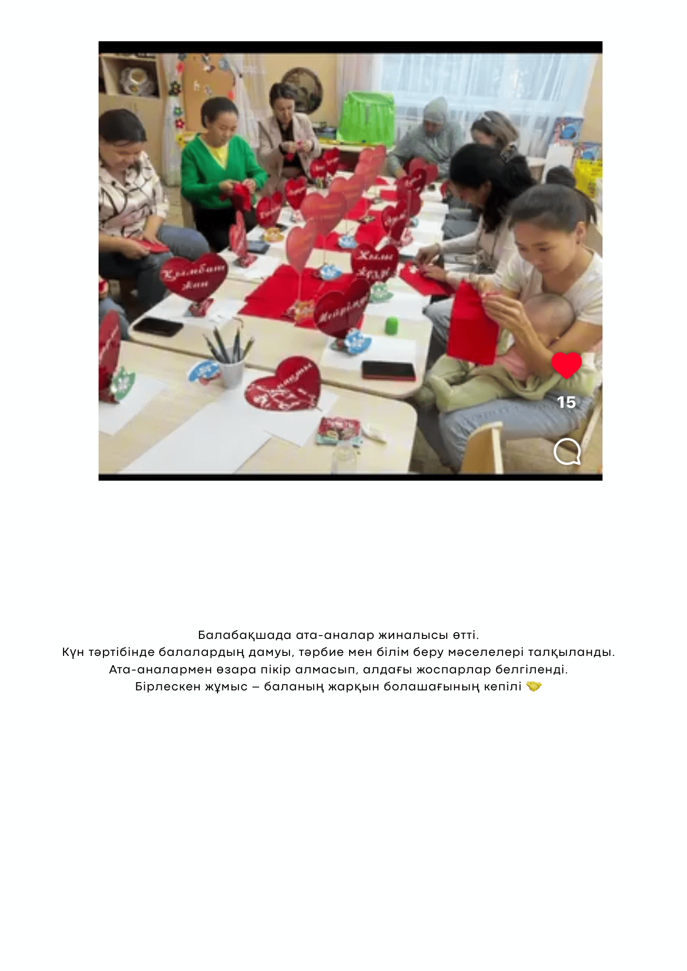 Ата-аналардың рөлі өте маңызды. Үй мен балабақша арасындағы тығыз байланыс баланың дамуына оң әсер етеді. Мамандардың ұсынымдарын орындау, балаға сенім мен қолдау көрсету – жетістікке жетудің басты шарты.