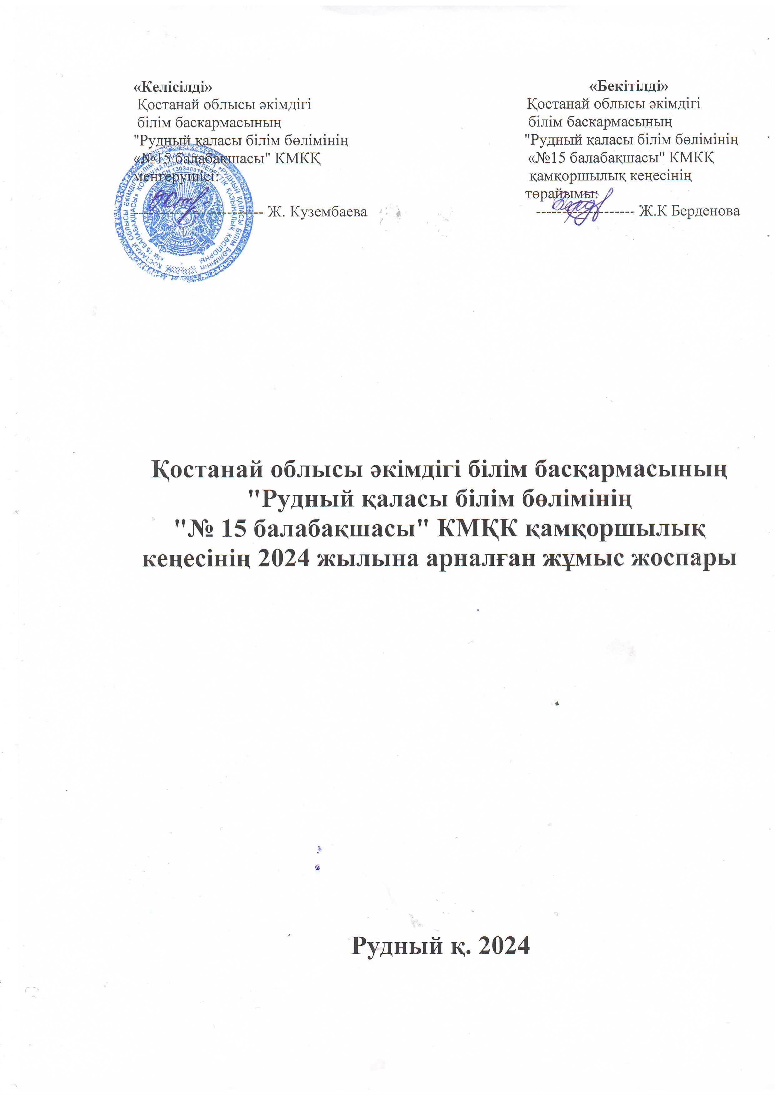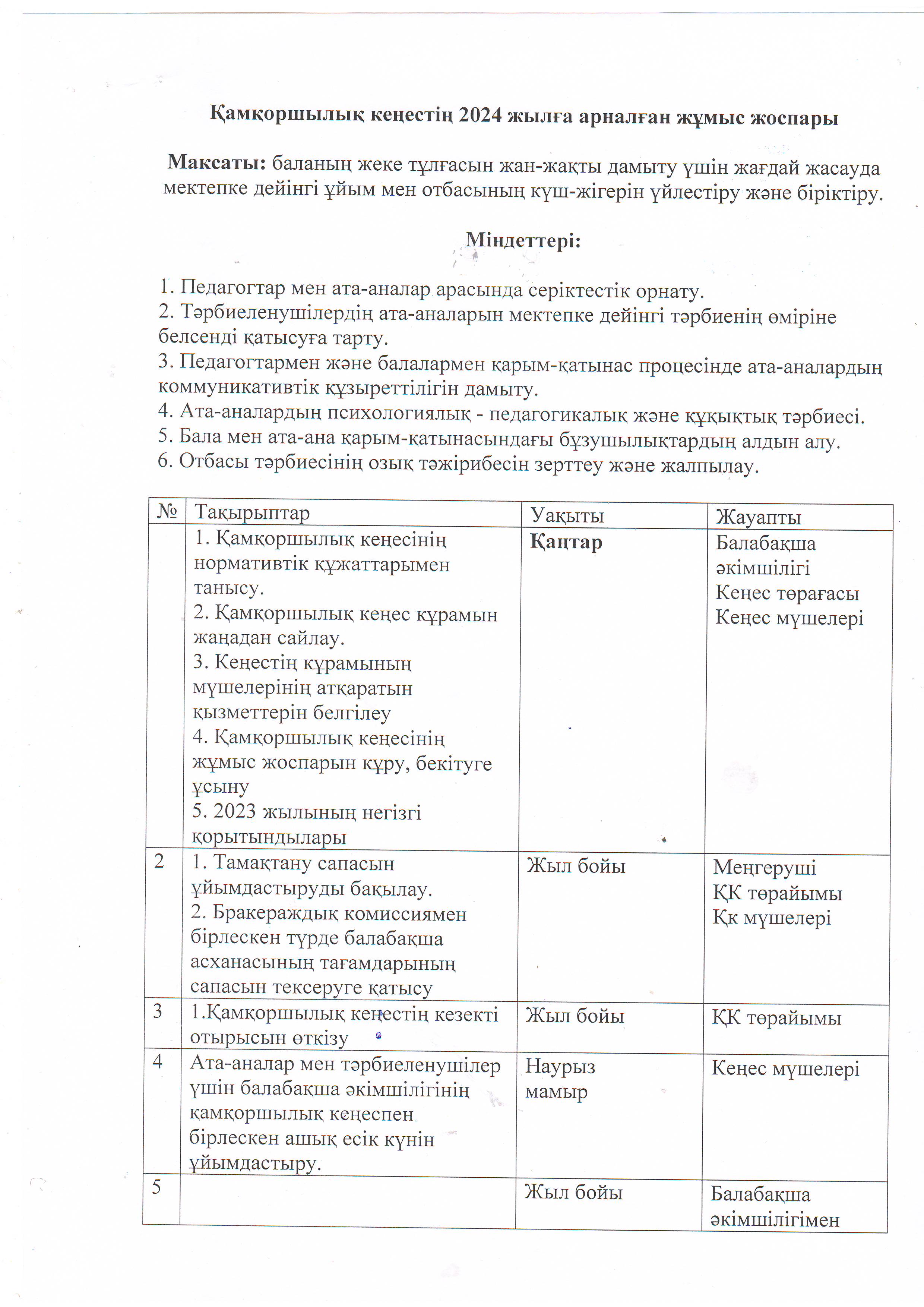Қамқоршылық кеңестің 2024 жылға арналған жұмыс жоспары